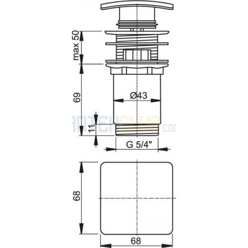 Водослив для умывальника click-clack 5/4" цельнометаллический с квадратной заглушкой A393, Alcaplast Код: A393