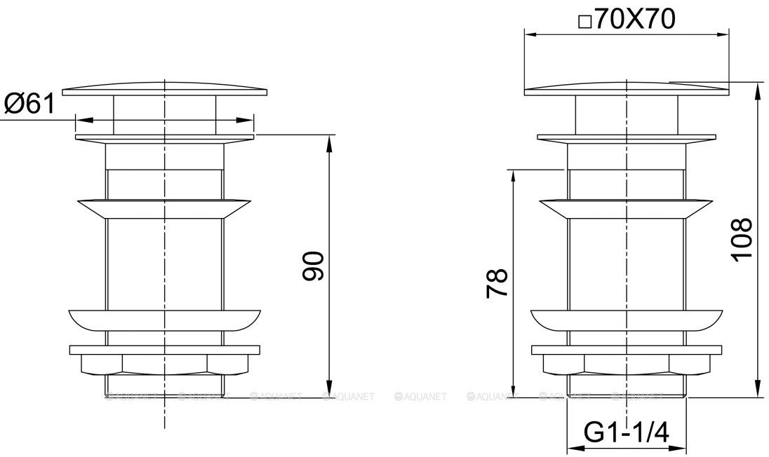5.21025-00 INFINITY Донный клапан Square 1 1/4 без перелива, сталь/латунь, хром Код: 5.21025-00
