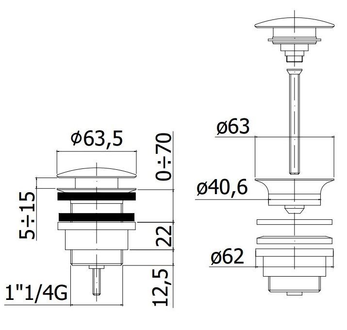 • Донный клапан Paffoni ZSCA050NO, с переливом, черный