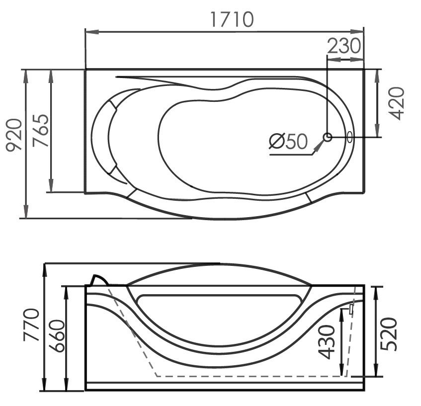 | Ручки на ванне | Нет |