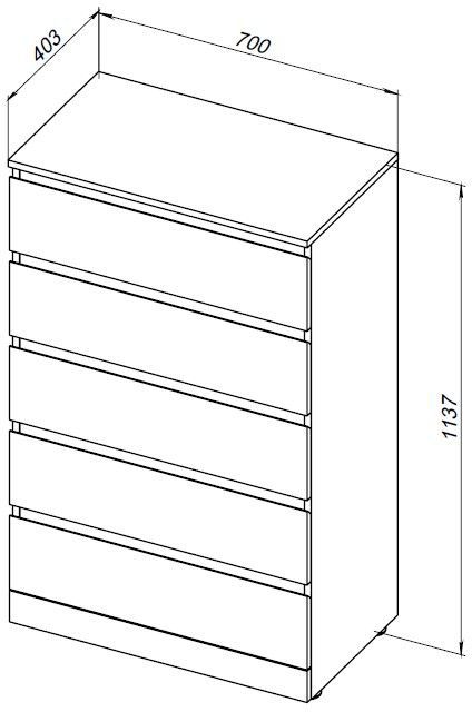 Комод Aquanet Сканди 700x400 Дуб крафт (5 ящиков) 00302552