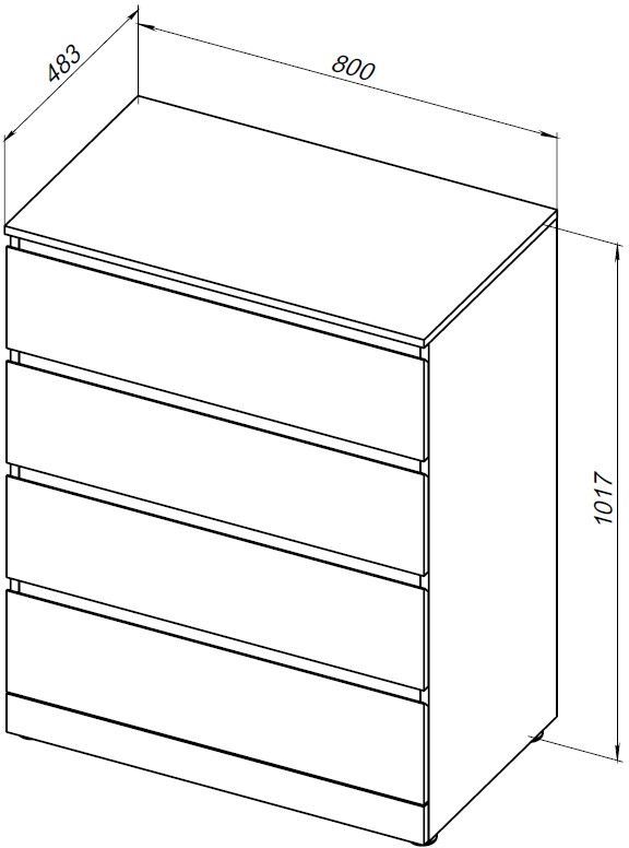 Комод Aquanet Сканди 800x480 Дуб крафт (4 ящика) 00302542