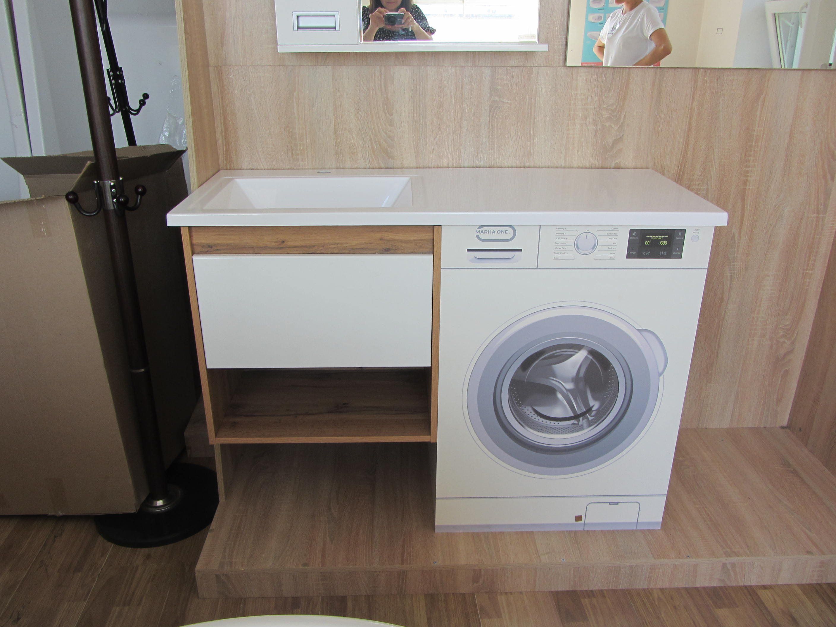 Тумба подвесная с раковиной над стиральной машиной Прага 130 Дуб Вотан-белый левая/правая