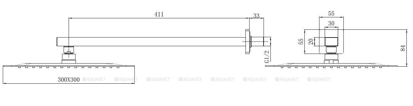 Верхний душ Slim,нерж.сталь #304, 300х300мм. держатель 430мм, хром 5.21A19-00 INFINTY Код: 5.21A19-00