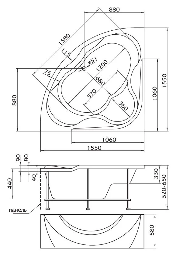 | Форма | Угловая |