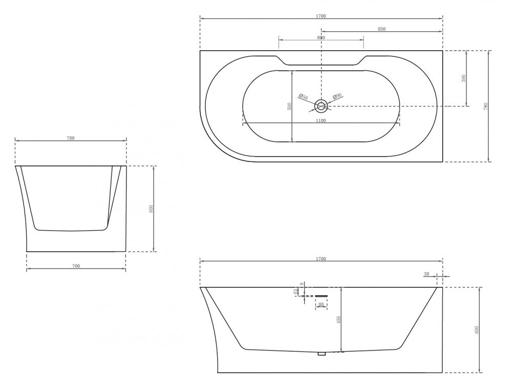 Акриловая ванна ABBER AB9335-1.7 R