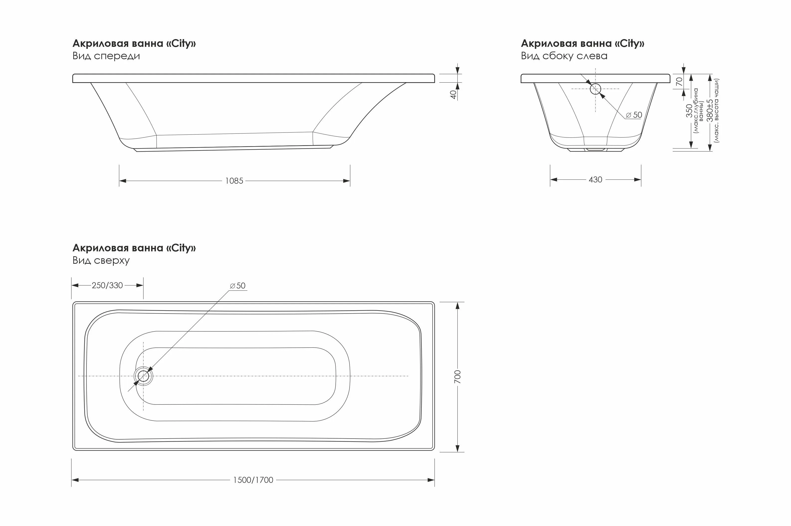 Акриловая ванна CETUS City 1500*700мм и ножки универсальные CET150