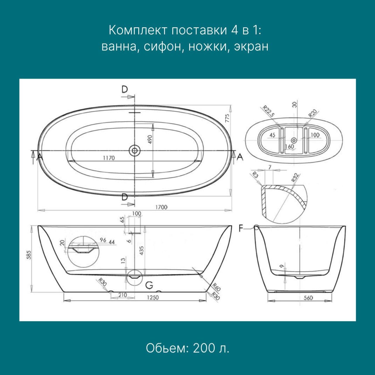 | Длина, см | 170 |