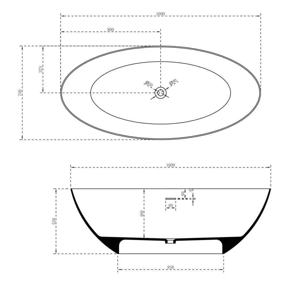 Ванна из искусственного камня ABBER Stein AS9625-1.6 белая матовая