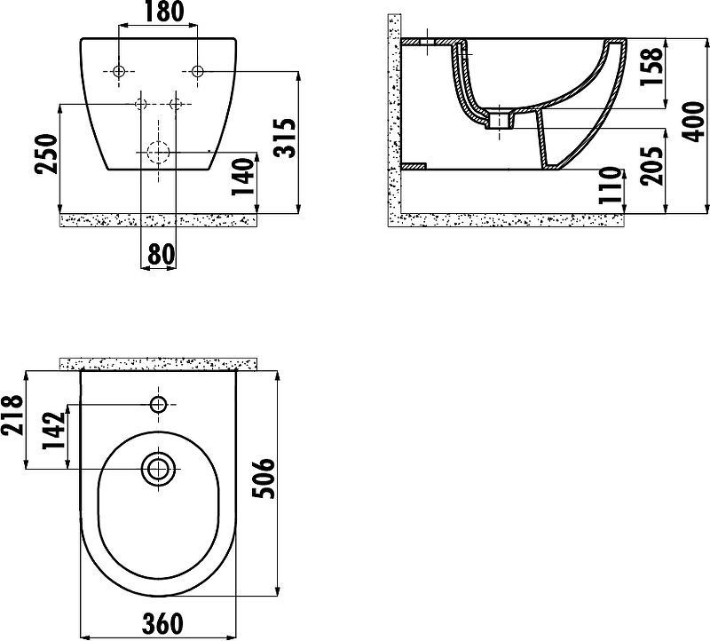 Биде Creavit Free FE510-00BM00E-0000 подвесное Базальт матовое