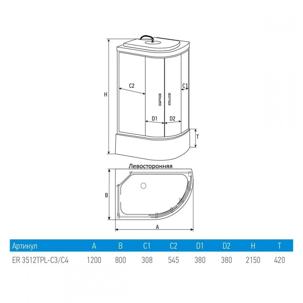 Душевая кабина Erlit Comfort 120x80 ER3512TPL-C3-RUS