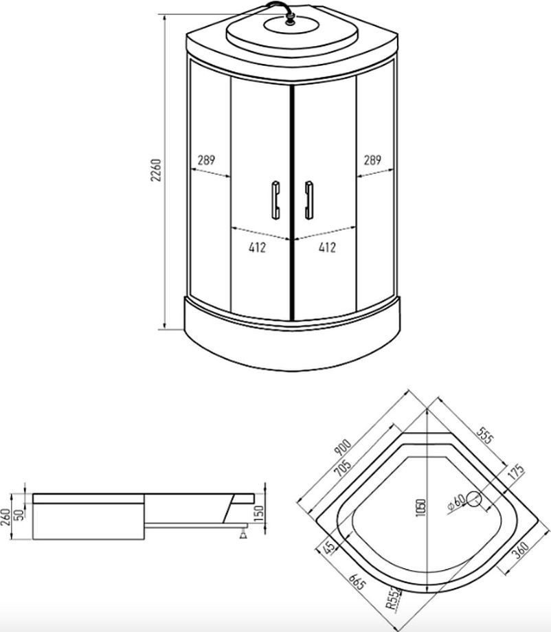 Душевая кабина Erlit ER350926-C3-RUS 90x90x226 см