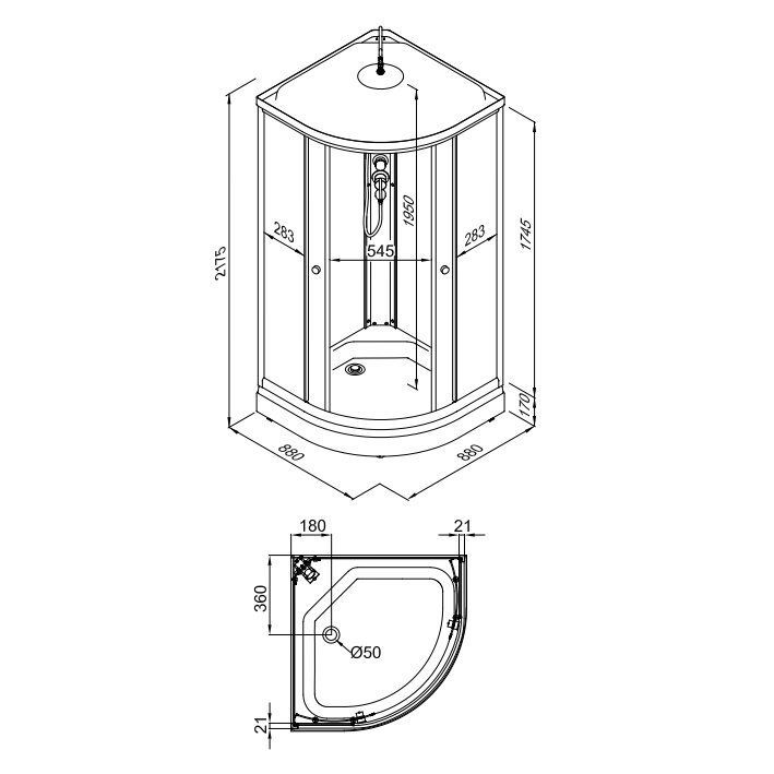 | Форма душевого ограждения | Полукруг |