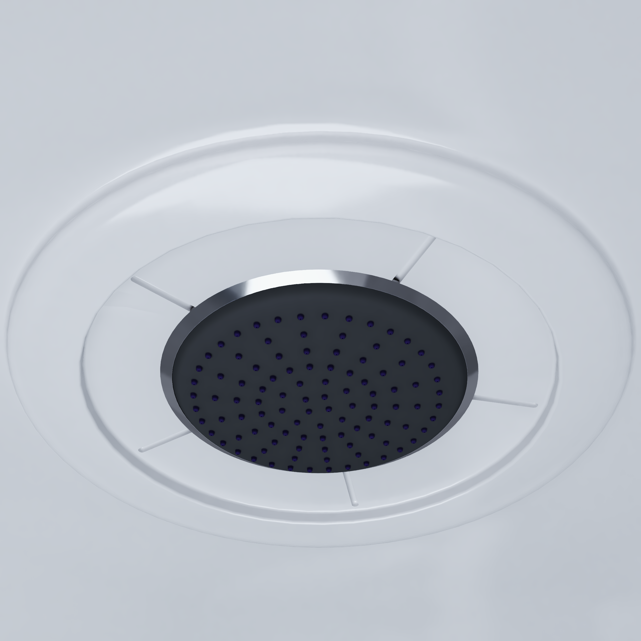 Материал душа был сделан из металла, покрашенного в цвет дерева. Душ состоял из бассейна снизу и скрытый бак сверху, который был соединен шлангом, длиной около двух метров. В бассейне был установлен насос, который перекачивал воду в верхний резервуар и затем, подавал её в душевую головку. Единственный недостаток был в том, что при мытье была использована одна вода, которая снова и снова перекачивалась в верхний резервуар.