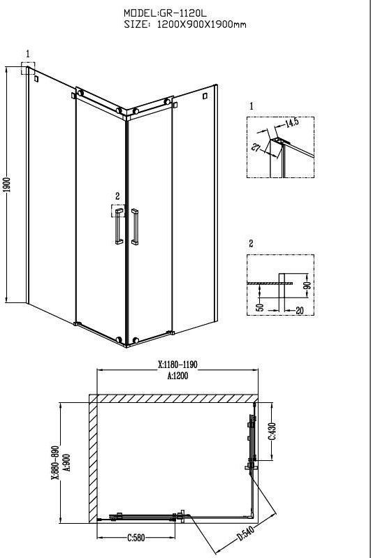 Душевое ограждение Alex Baitler двухстенное AB14120X1