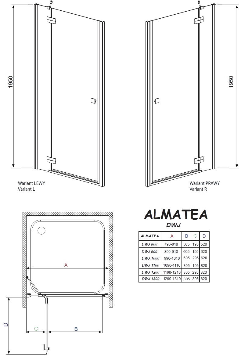 Душевое ограждение Radaway Almatea DWJ 120/R 31502-01-01N