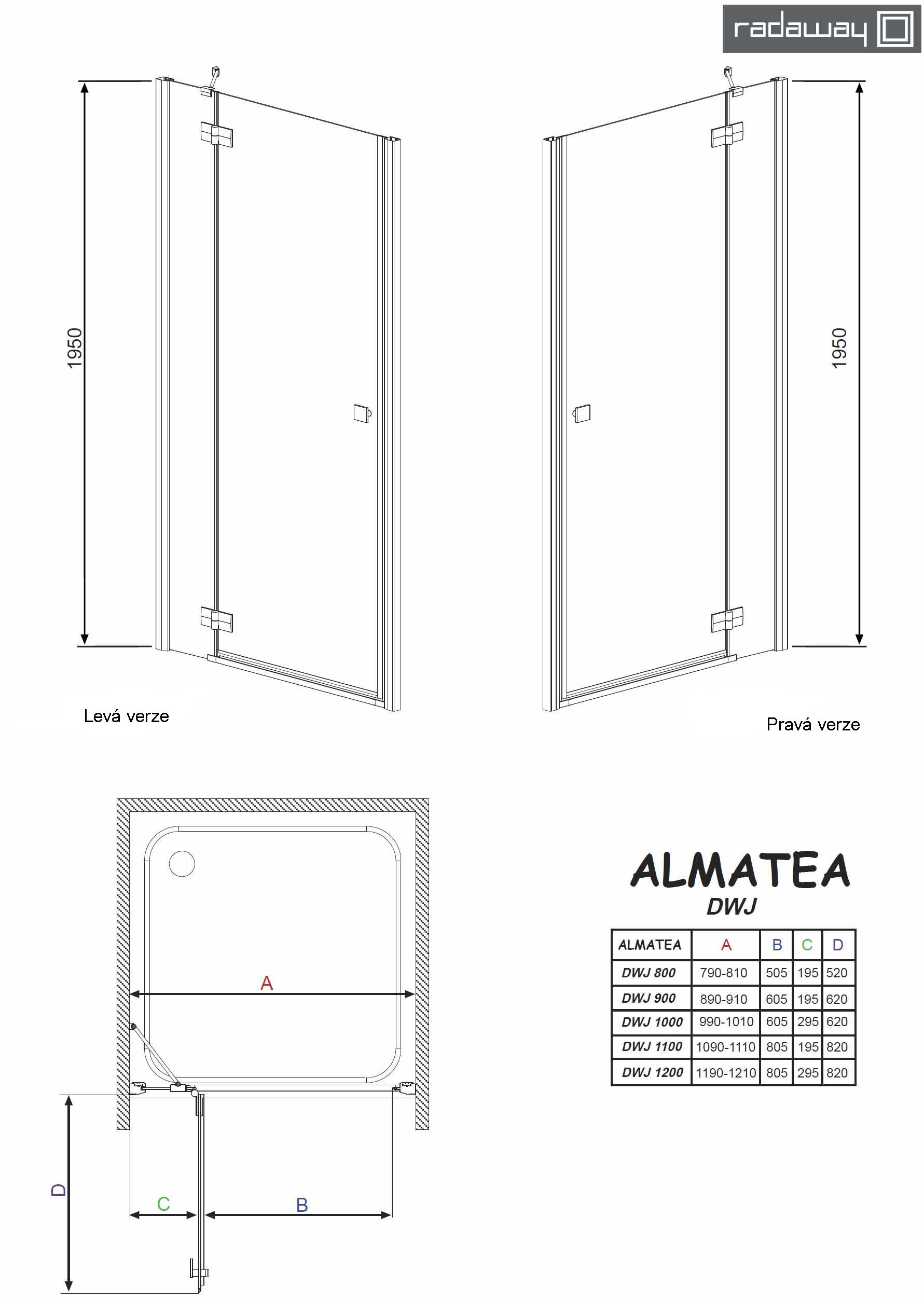 Душевое ограждение Radaway Almatea DWJ Gold 120/L 120x195
