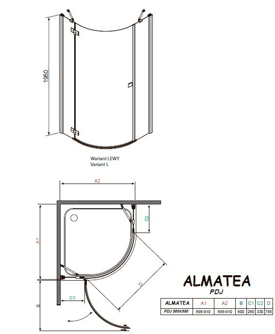 | Форма душевого ограждения | Полукруг |