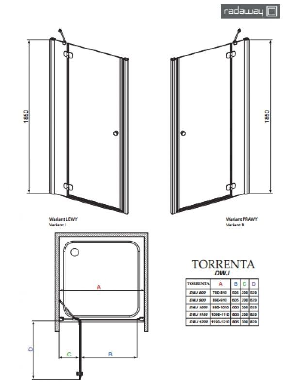 Душевая дверь 1100х1850, левая, каррэ стекло, хром Radaway Torrenta DWJ 31940-01-10N 120650 тг. 241300 тг.