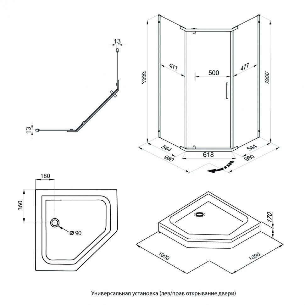 Душевая дверь 1000х1850, правая, каррэ стекло, хром Radaway DWJ Torrenta 32020-01-10N 128405 тг. 256810 тг.