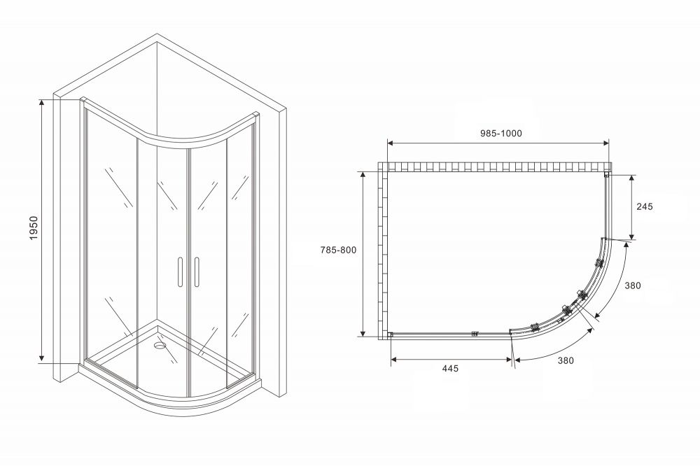 | Форма душевого ограждения | Полукруг |