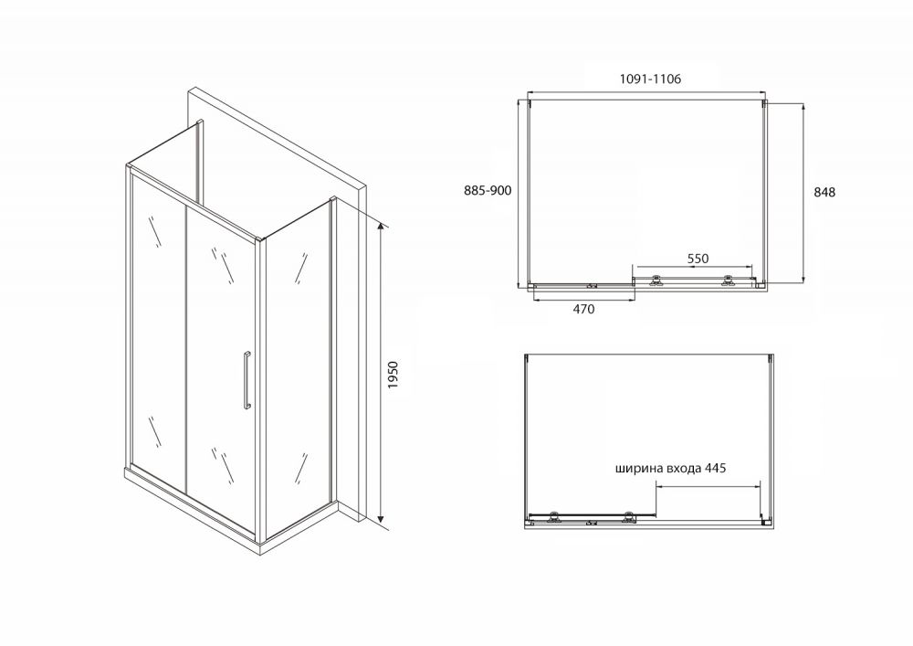 | Форма душевого ограждения | Прямоугольная |