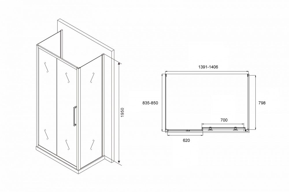 Душевой уголок ABBER Schwarzer Diamant AG30140BH-S85B-S85B
