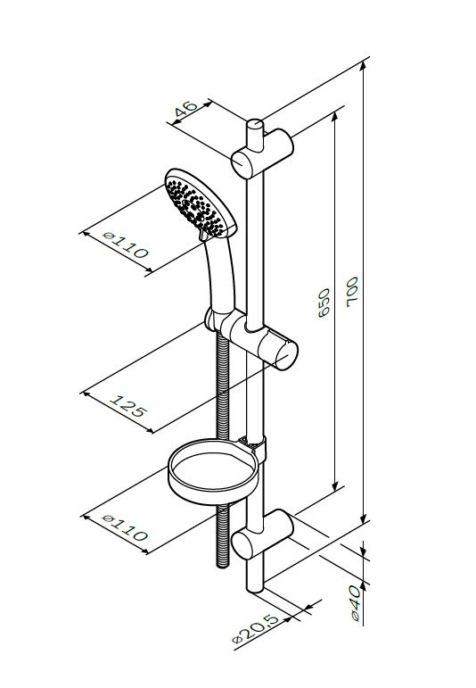 Душевой комплект, ручной душ 110 мм, 3 функции, штанга 700 мм, шланг 1750 мм ,шт F0180064 Am Pm Like