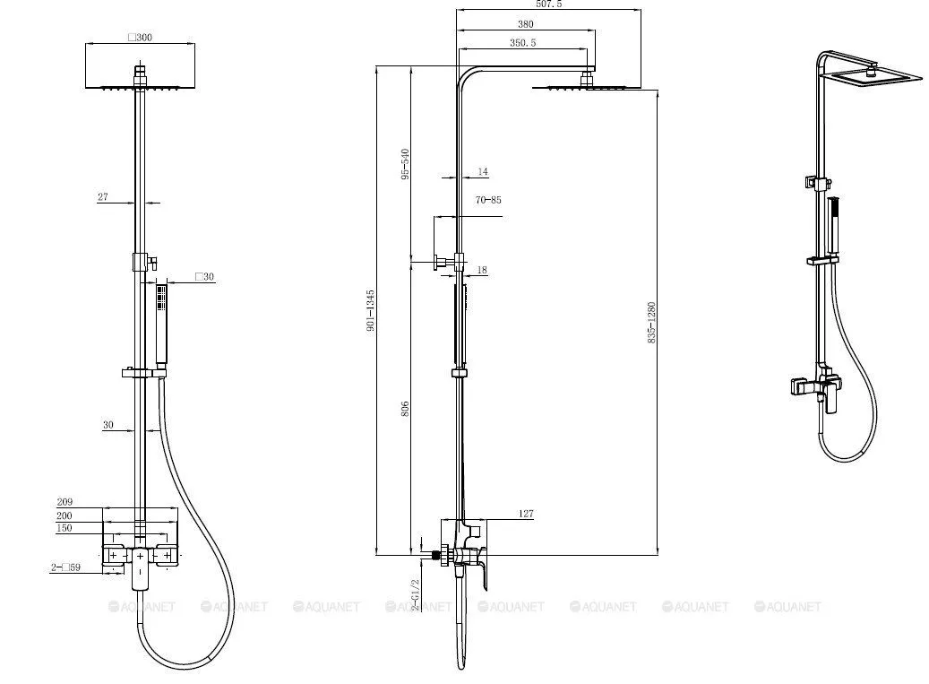 5.21012-00 INFINITY Душевая система, высота 850-1330мм, Верх душ Slim 300мм. Kerox, хром