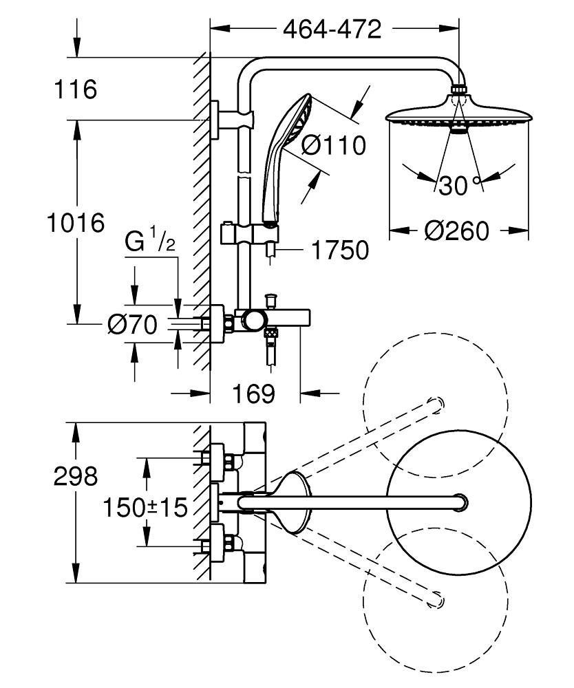 Душевой гарнитур Grohe Euphoria 260 shower system THM bath 26114001
