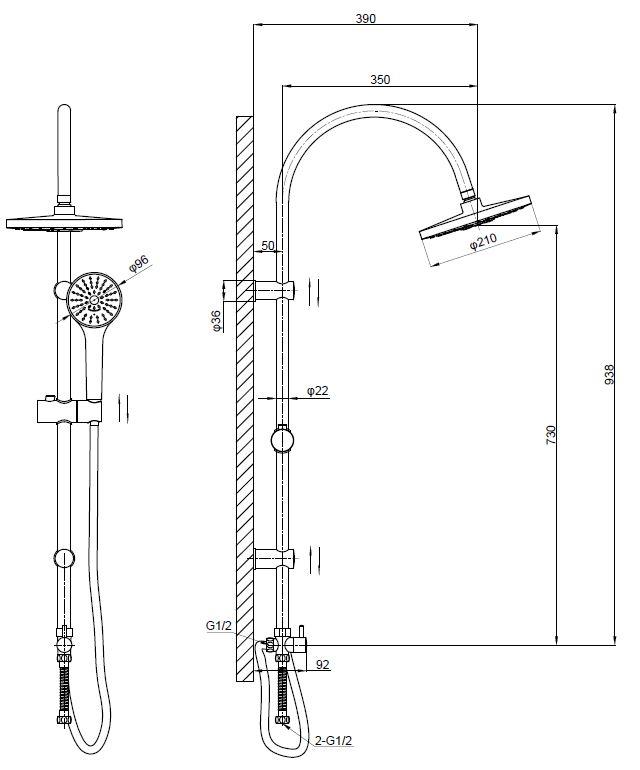 Душевая система с переключателем, без смесителя, хром ESKO ST01