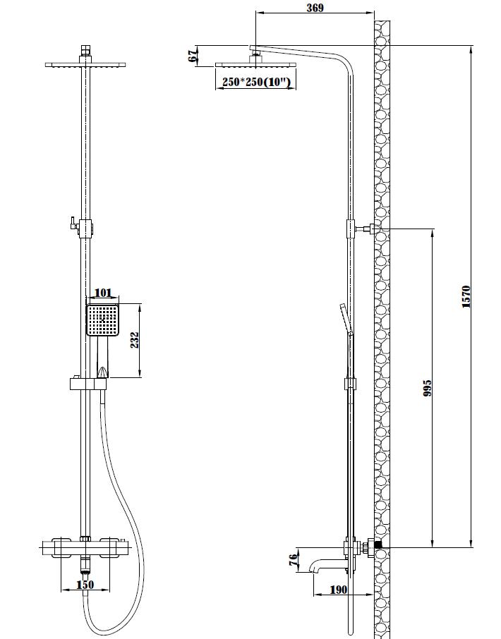Душевая система с термостатом для душа, черный ESKO STT5054 BL