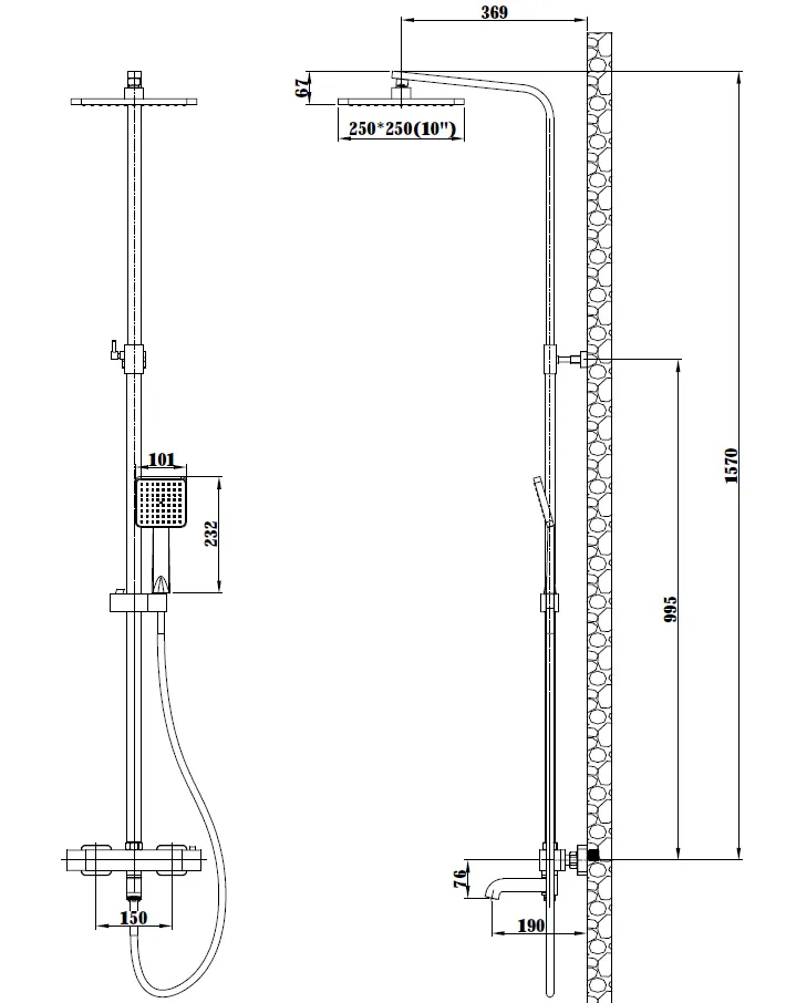 Душевая система с термостатом для душа, черный ESKO STT5054 BL