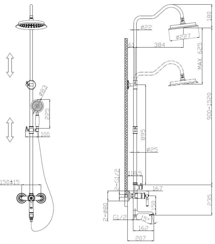 Душевая система со смесителем для ванны, бронза сатин ESKO ST300Bronze