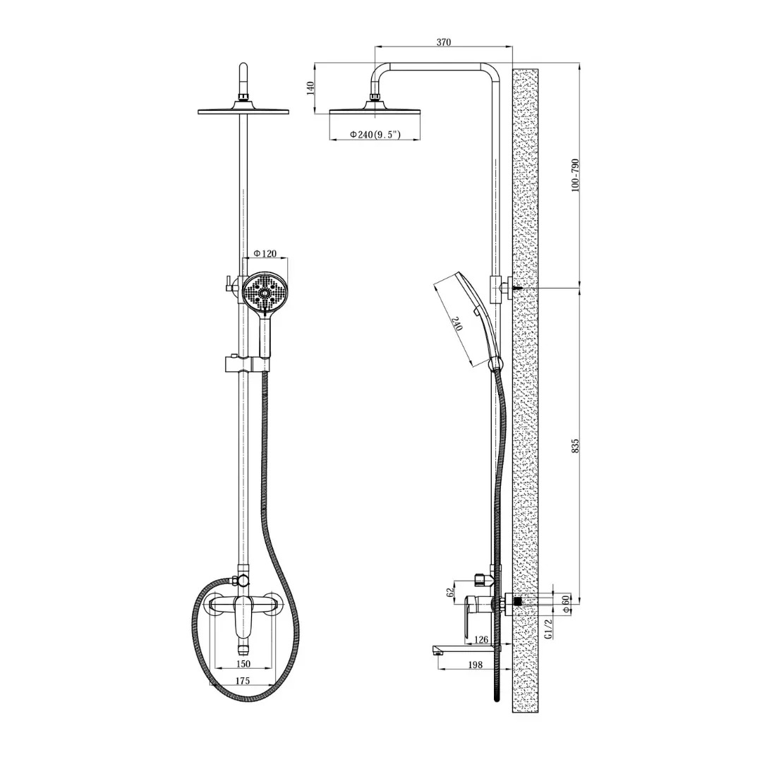 Душевая система со смесителем для ванны, черный ESKO Lagos Black ST205LGBL