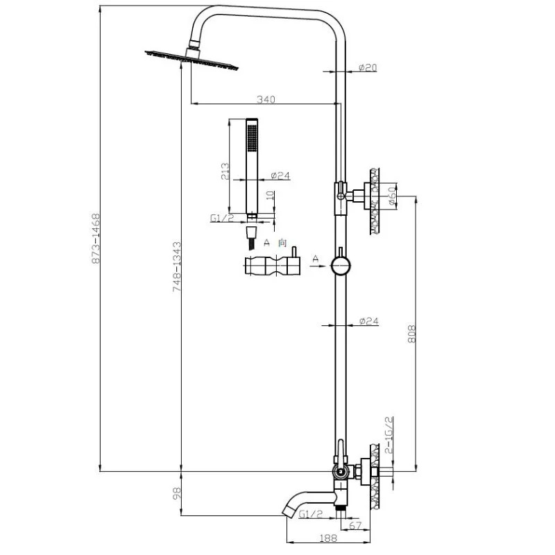 Душевая система со смесителем для ванны, оружейная сталь ESKO Bangkok Gun metal ST250BGGM