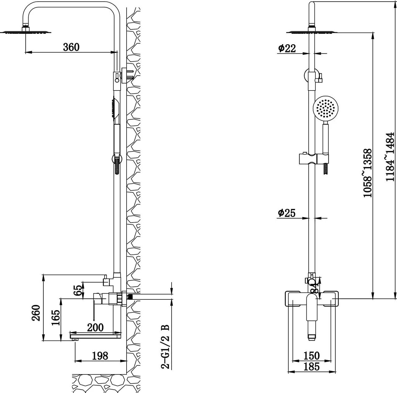 Душевая система со смесителем для ванны, сатин ESKO Ekaterinburg ST250EK