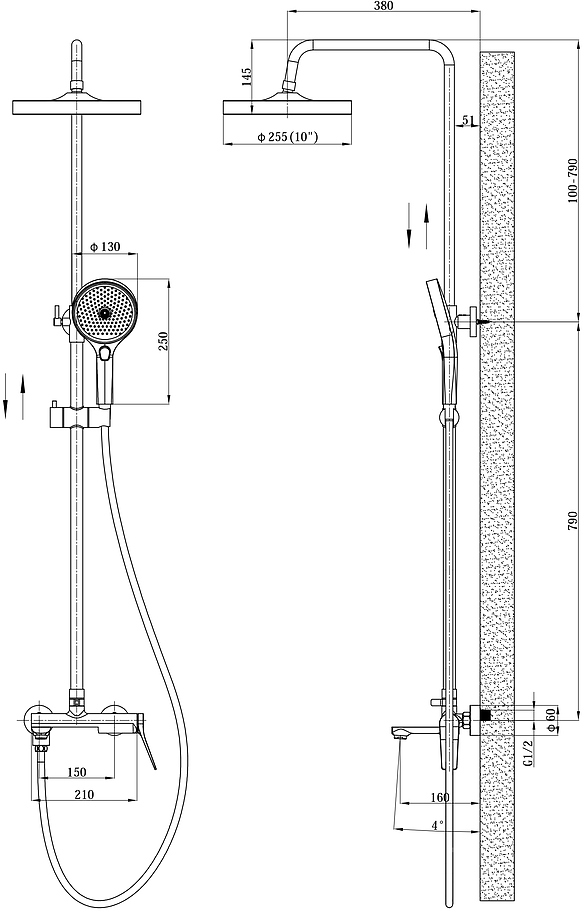 Душевая система со смесителем для ванны, золото ESKO Shanghai ST1425SHAGold