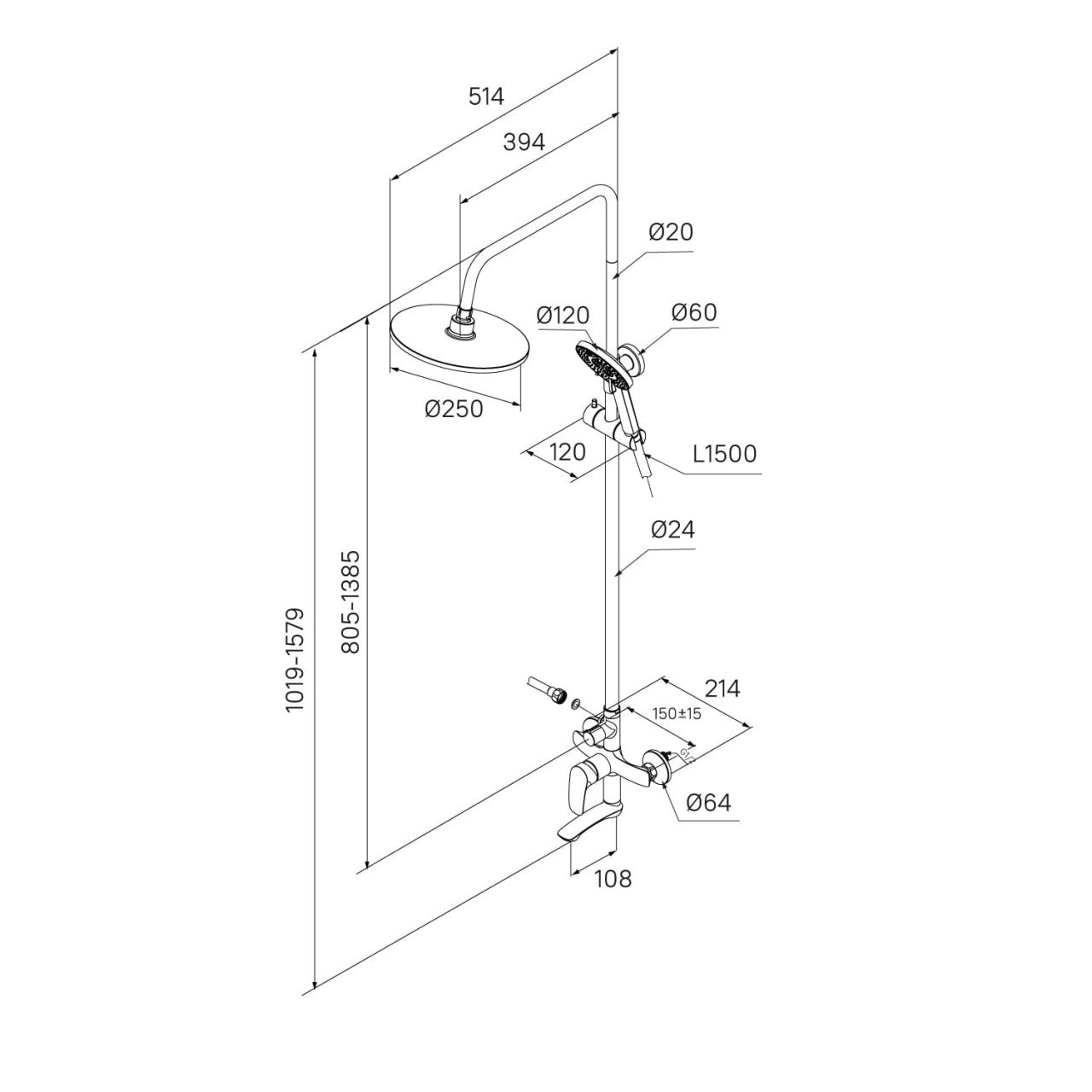 Смеситель для ванны с верхним душем, графит, Rora, Milardo, RORGM4FM06