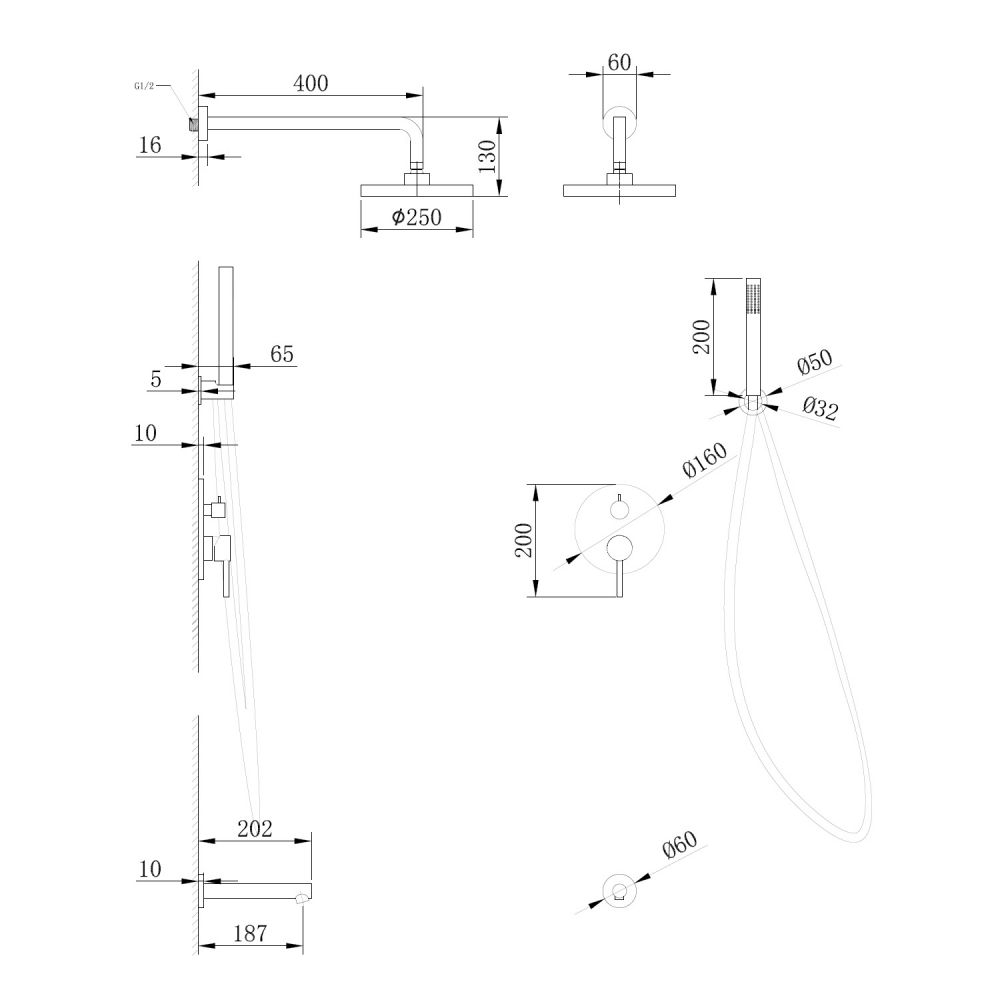 Душевая система ABBER Emotion AF8817G скрытого монтажа с изливом, золото матовое