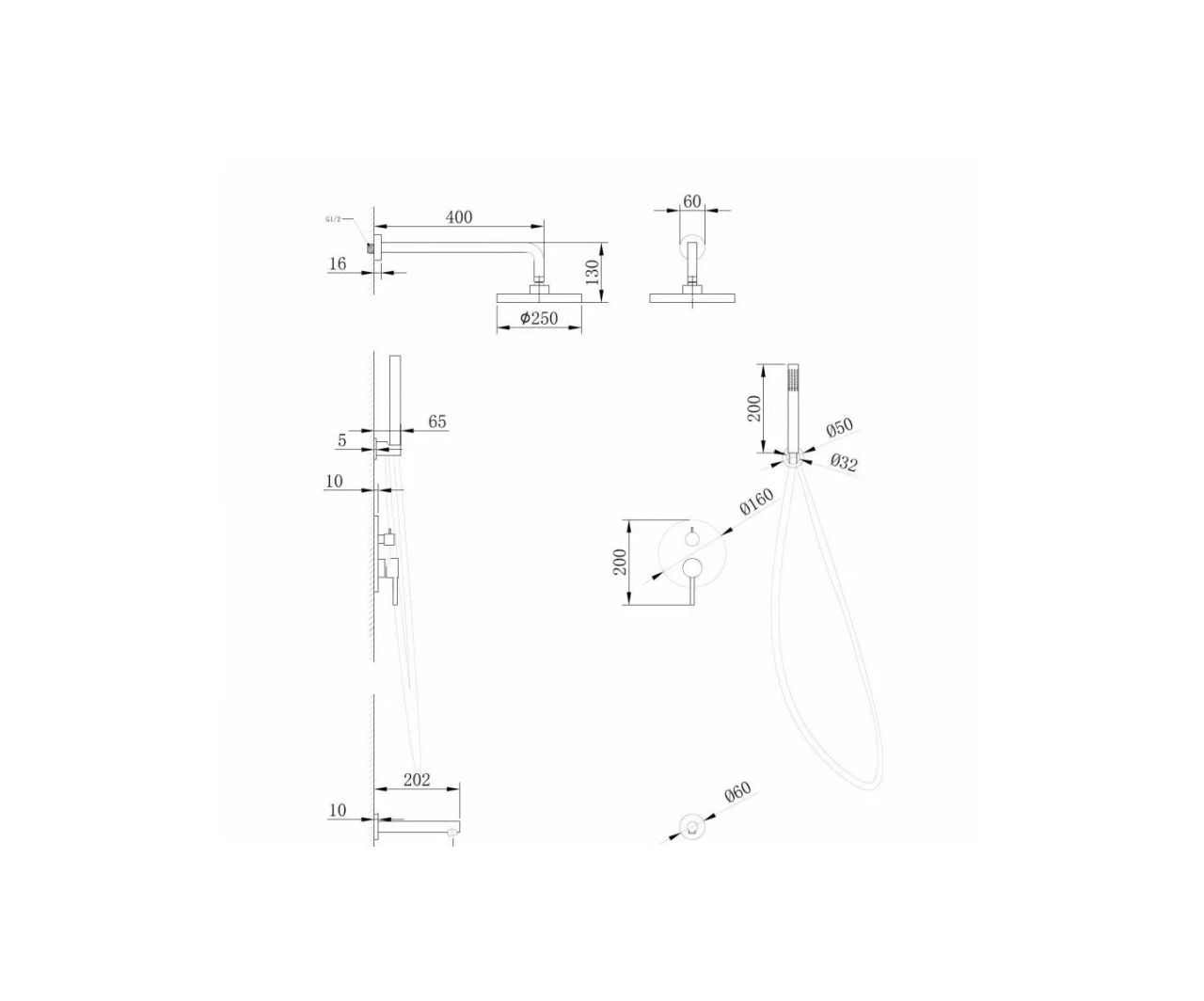 Душевая система ABBER Emotion AF8817NG скрытого монтажа с изливом, никель