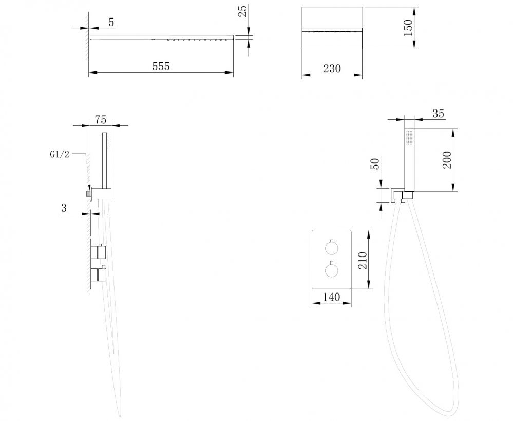 Душевая система ABBER Weiss Insel AF8052W скрытого монтажа без излива, термостат, белый
