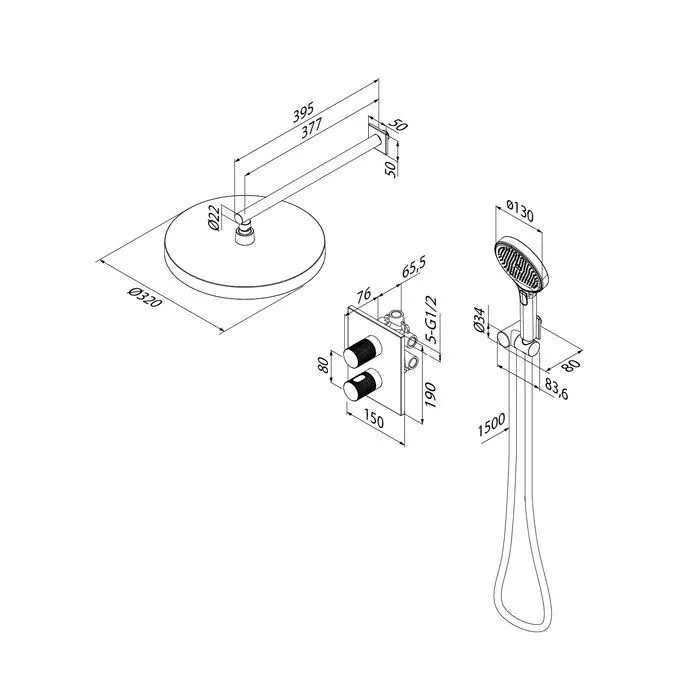 Душевая система с тропическим и ручным душем, с термостатом, графит матовый , Duna, IDDIS, DUNGM0Ti67
