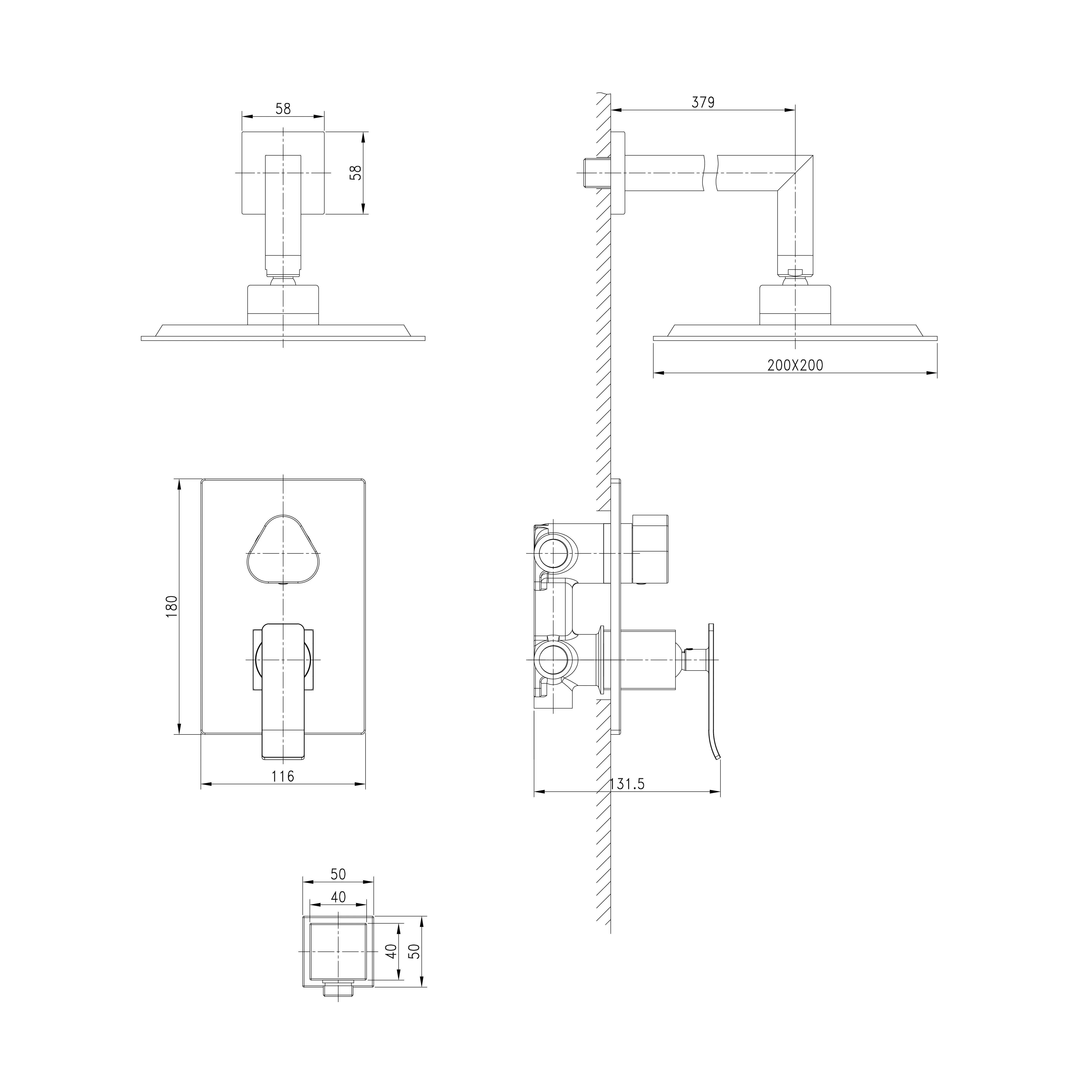 | Форма верхнего душа | Квадратная |