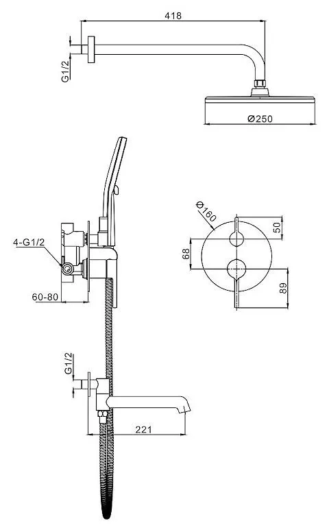Встраиваемая душевая система Raglo оружейная сталь R20.27.09
