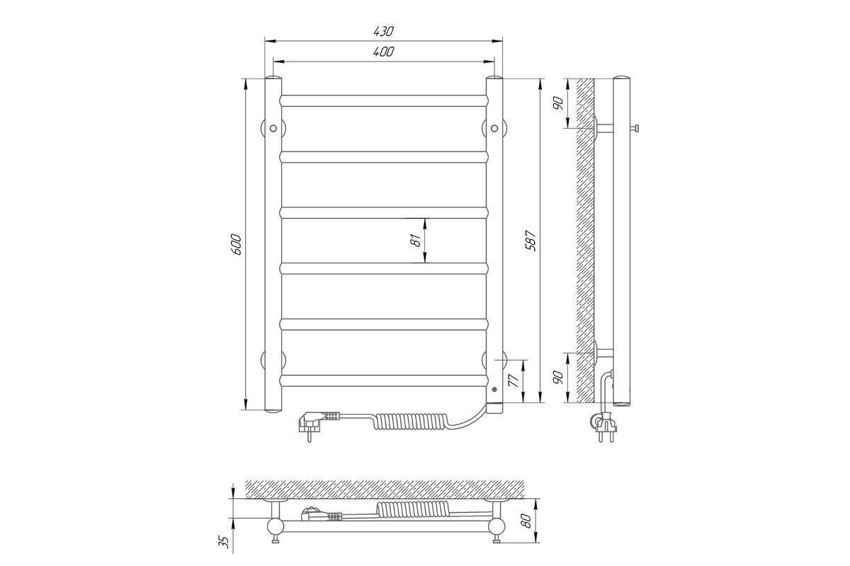 Полотенцесушитель электрический Laris Джаз П6 400x600 Правый 73207470