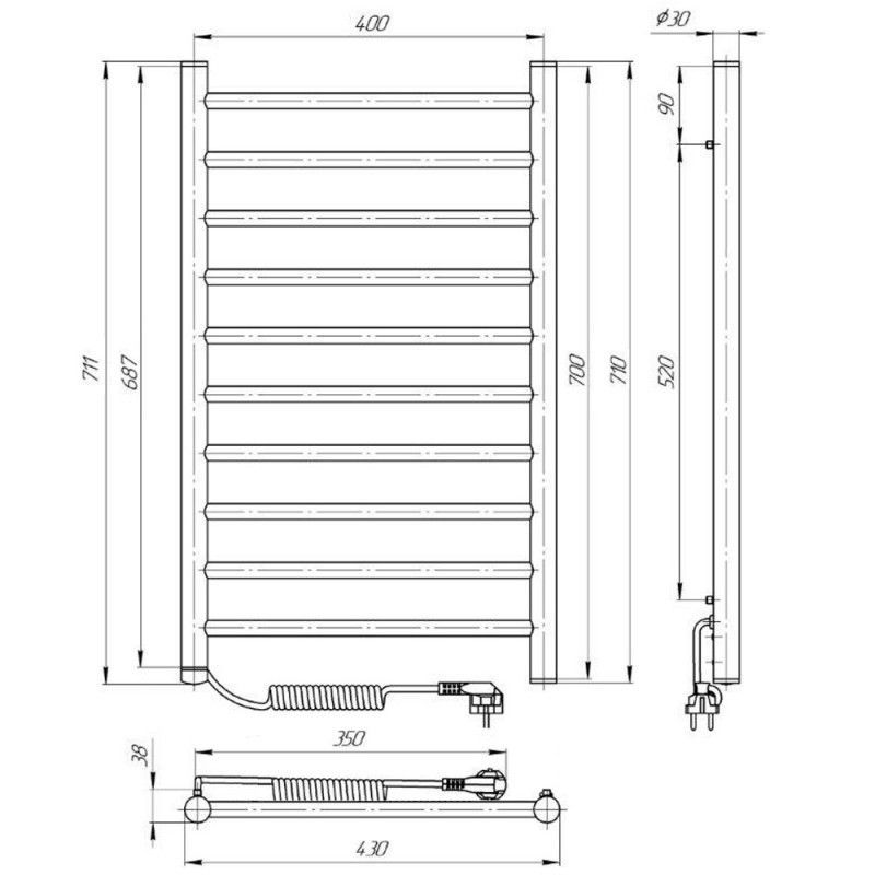 Полотенцесушитель электрический Laris Феличия ЧКЧ П10 70x40 ТЭН Слева 73207594
