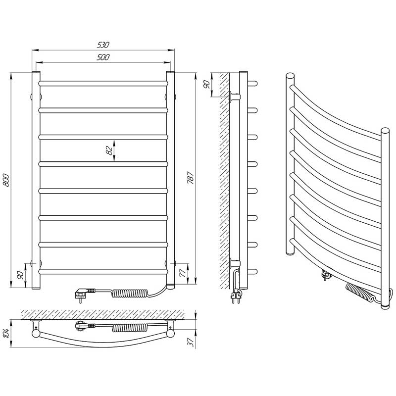 Полотенцесушитель электрический Laris Классик ЧК П8 50x80 ТЭН Справа 75201046