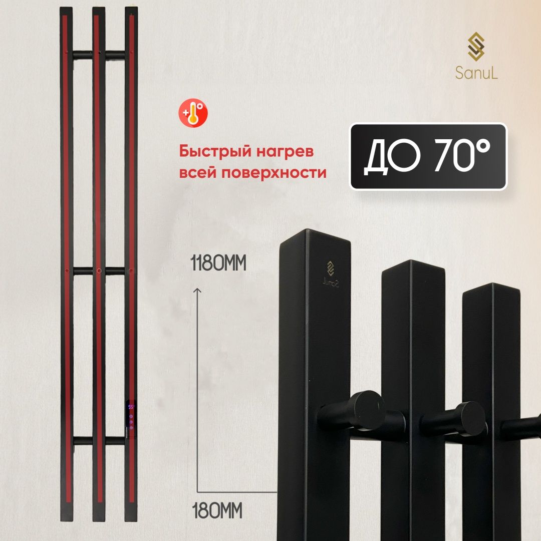 Полотенцесушитель Sanul Черный электрический G32, I-образный 18x118 см