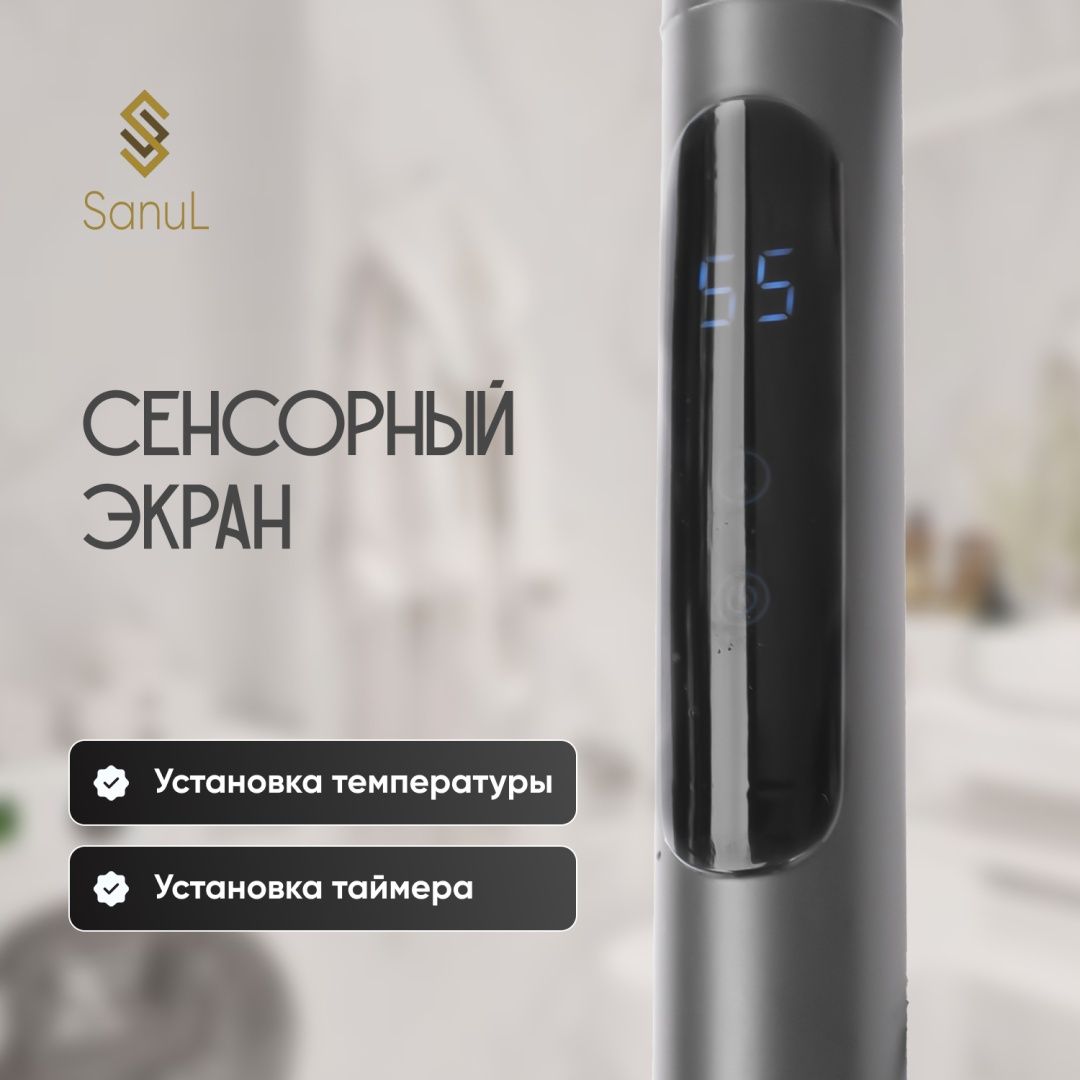 Полотенцесушитель Sanul электрический F55 серый, F-образный 42x66 см